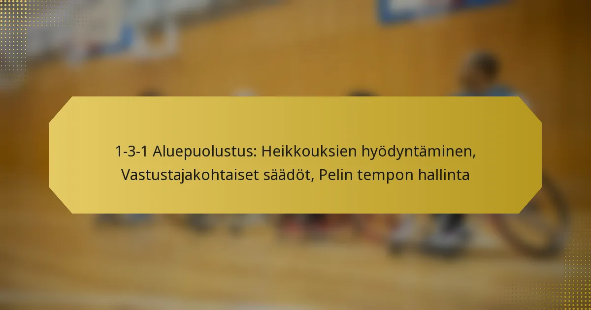1-3-1-aluepuolustus on strateginen koripallomuotoilu, joka on suunniteltu parantamaan puolustuksen kattavuutta sijoittamalla yksi pelaaja ylös, kolme keskelle ja yksi taakse. Vaikka se tehokkaasti suojaa kaukoheittoja ja ajoväyliä vastaan, se myös esittää erityisiä haavoittuvuuksia, joita vastustavat joukkueet voivat hyödyntää. Tehokkuuden maksimoimiseksi joukkueiden on tehtävä tärkeitä ottelukohtaisia säätöjä ja hallittava pelin tempoa varmistaen, että ne voivat sopeutua hyökkäysuhkiin ja ylläpitää puolustuksen eheyttä.