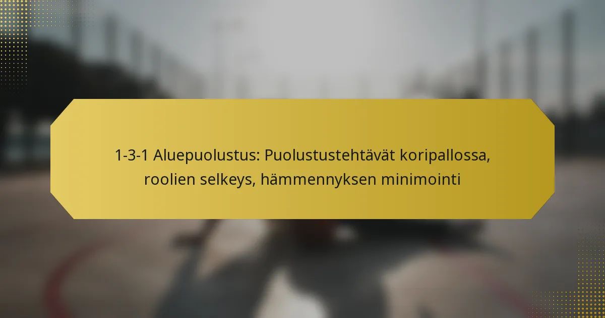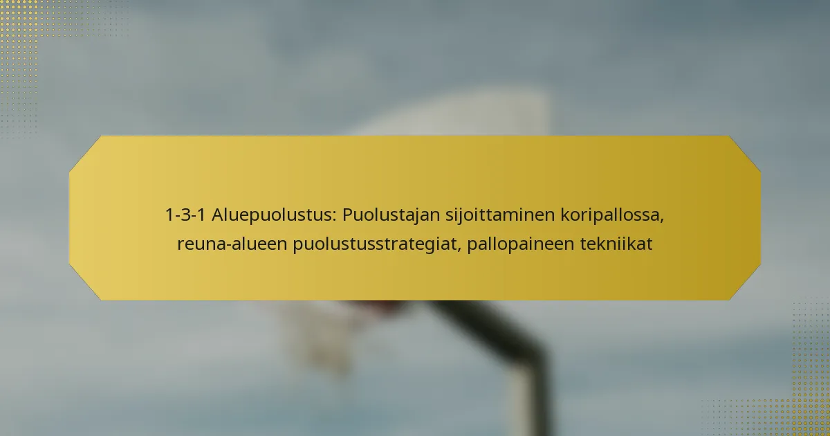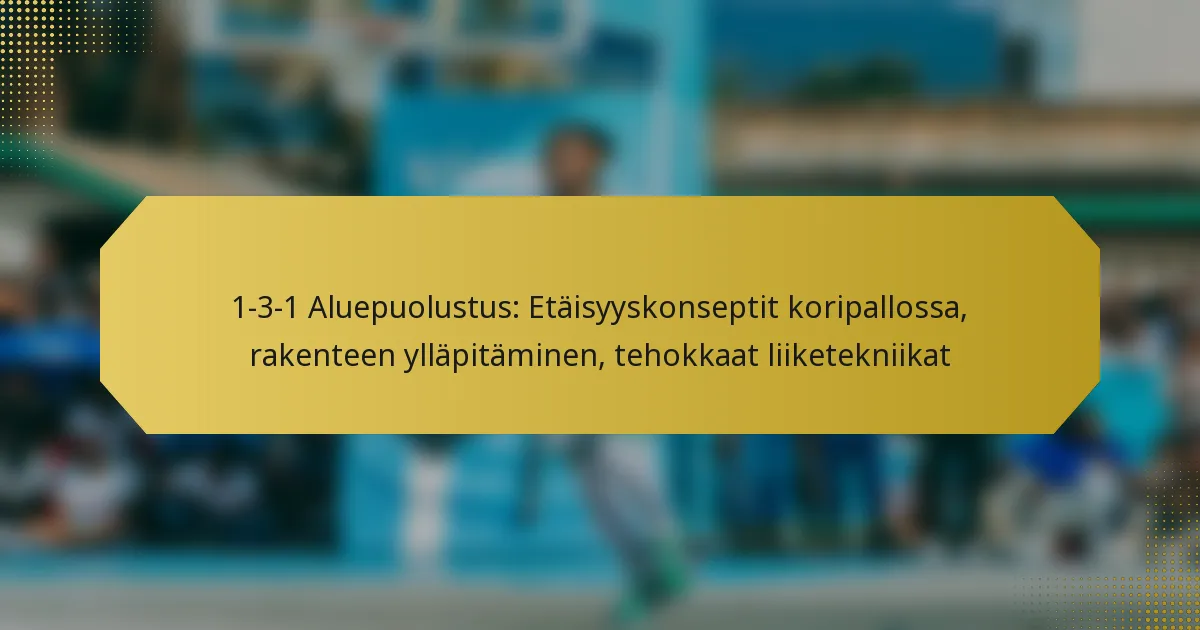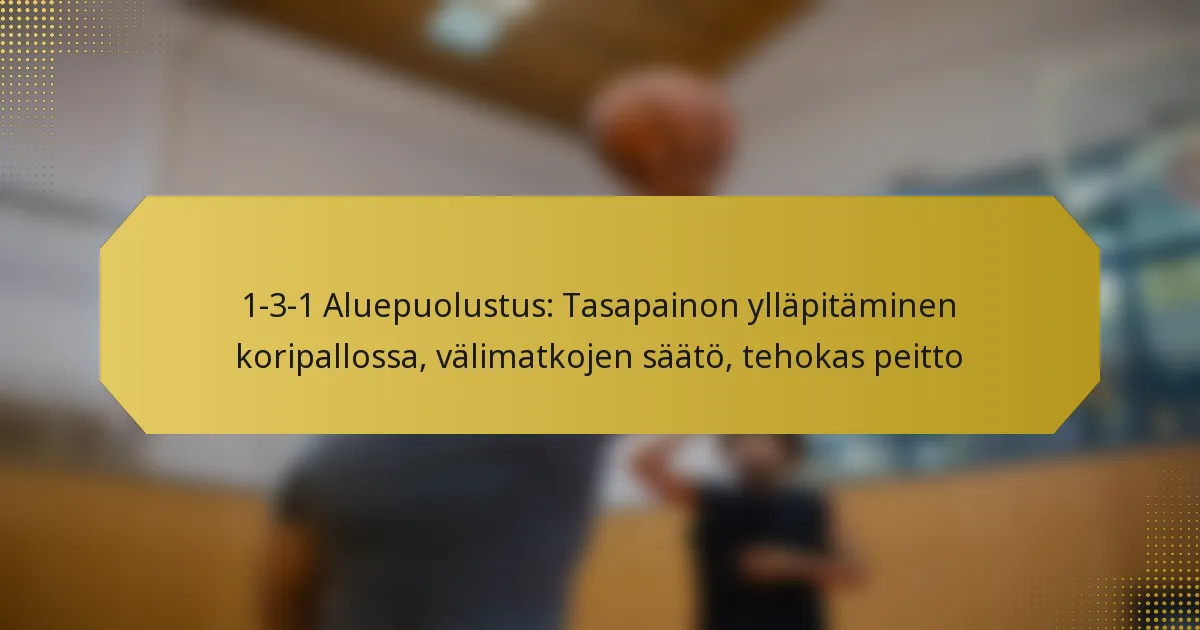 1-3-1-aluepuolustus on koripallostrategia, joka sijoittaa yhden pelaajan eteen, kolme keskelle ja yhden taakse. Tämän muodon tavoitteena on luoda tasapainoinen puolustus, joka kattaa kentän tehokkaasti samalla kun se painostaa pallonkäsittelijää ja suojaa koria.