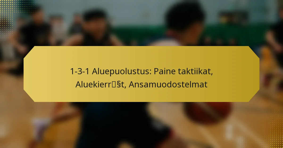 1-3-1-aluepuolustus on koripallostrategia, joka sijoittaa pelaajat strategisesti painostamaan palloa samalla kun se kattaa tehokkaasti kentän keskeiset alueet. Hyödyntämällä painostustaktiikoita tämä muodostelma häiritsee hyökkäyksen rytmiä ja luo mahdollisuuksia pallonmenetyksiin ansa- ja sulkemistaktiikoiden kautta. Menestyksekäs toteutus riippuu tehokkaista aluekiertoista ja selkeästä viestinnästä pelaajien kesken, jotta puolustuksen eheys säilyy ja he pystyvät haastamaan heittoja.